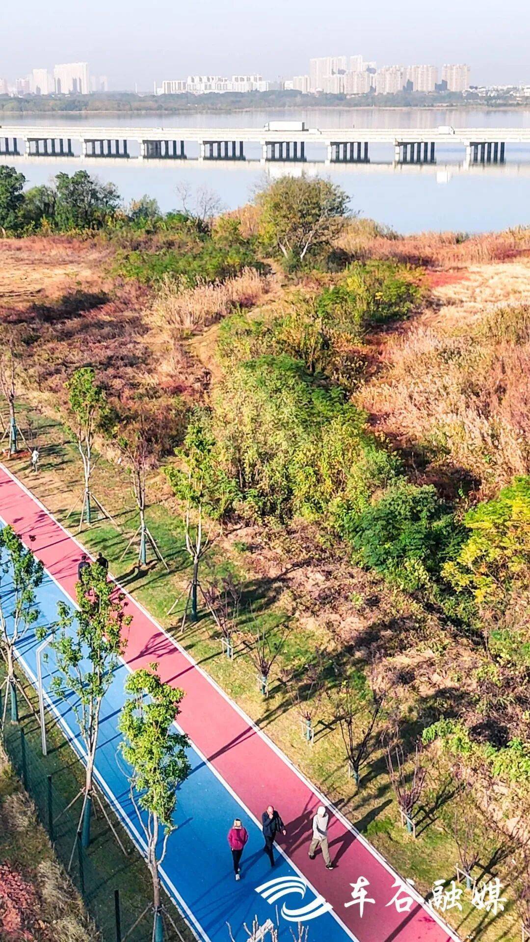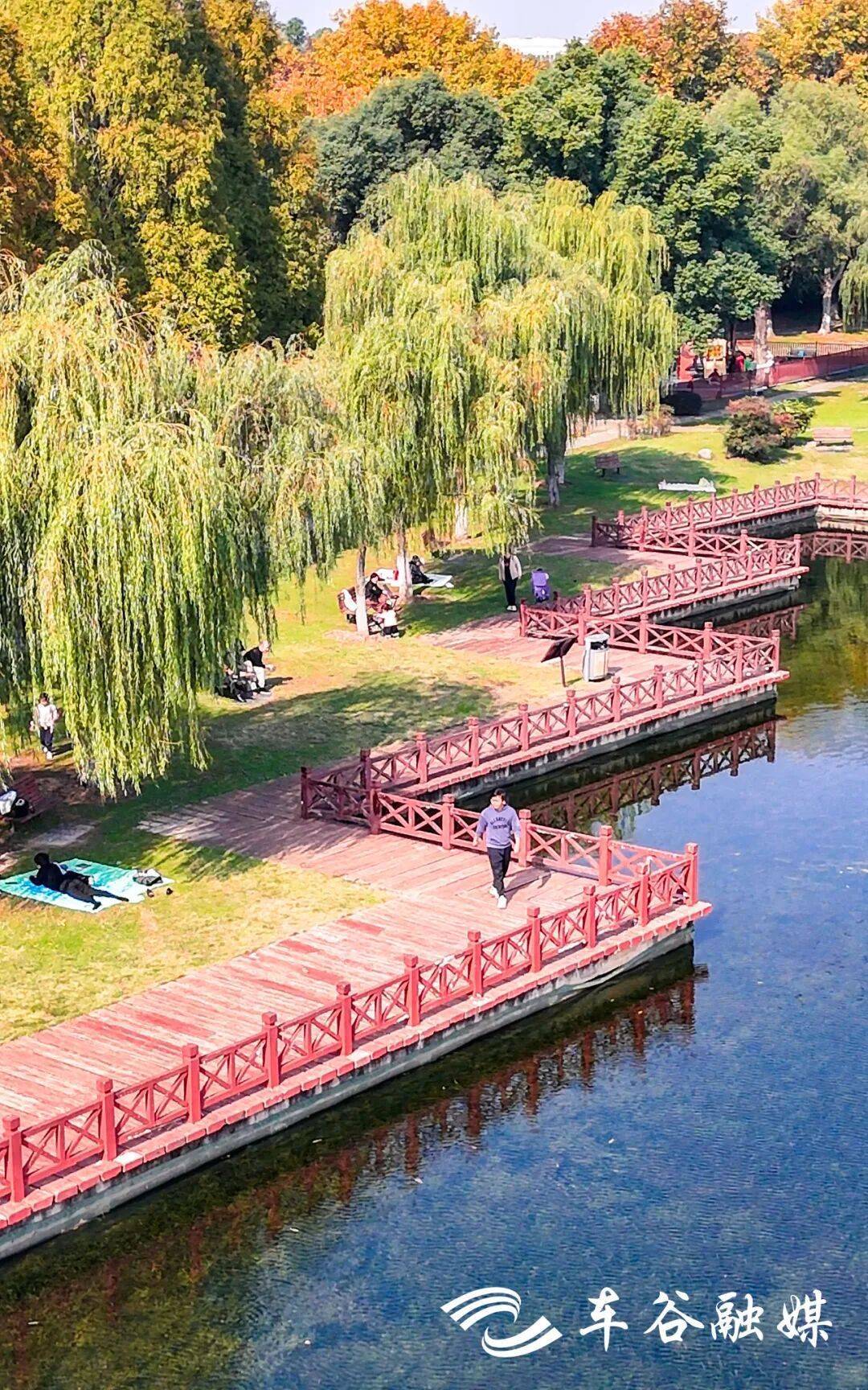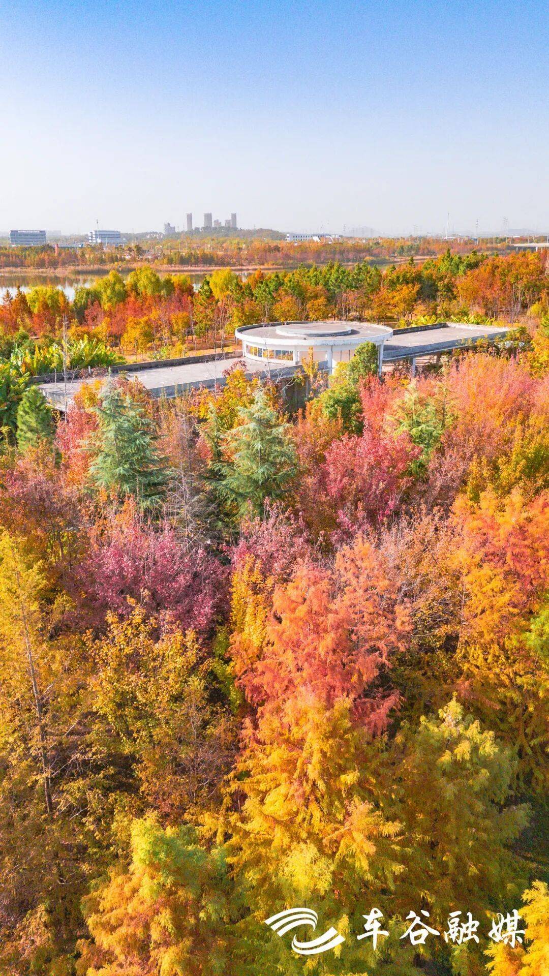 蓝色湖心逐渐晕开岸边的“橙黄橘绿”